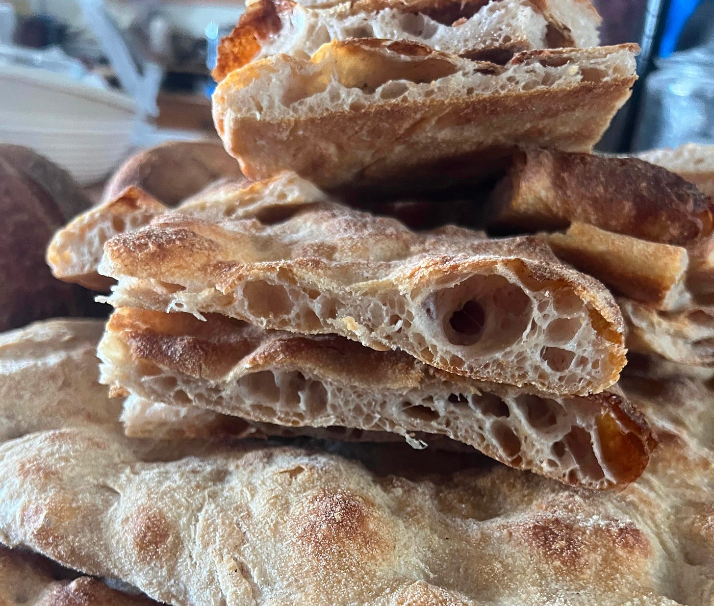 If baking on a stone/steel, use a generous amount of semolina or cornmeal when stretching and dimpling the dough so it doesn’t stick.